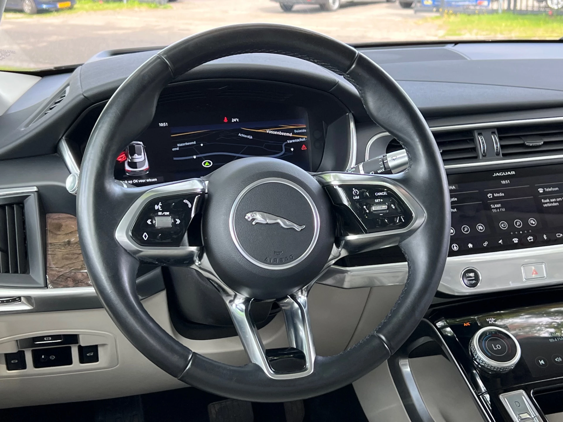 De hoorbare sensatie van het high performance audiosysteem is een ervaring op zich. Het navigatiesysteem loodst u snel naar uw reisdoel. In een auto als deze kunt u niet zonder electronic climate control, zodat de temperatuur altijd goed is. Achter het stuur van deze Jaguar bent u niet alleen. De auto kijkt als het ware met u mee tijdens de rit. De regensensor schakelt de ruitenwissers in als het nodig is en de automatisch inschakelbare verlichting doet de lichten voor u aan. Op de plaats van bestemming zijn het de parkeersensoren voor en achter die u assisteren bij het inparkeren. Gemak staat voorop bij deze Jaguar I-PACE. Bijvoorbeeld merkbaar aan de keyless entry. Met lederen stuur en automatisch dimmende buitenspiegels is deze auto helemaal compleet.